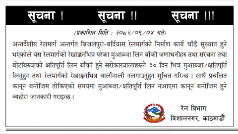 विज्ञापन कर सम्बन्धि १५ (पन्ध) दिने शिलबन्दी दरभाउ पत्रको दोश्रो पटक आव्हानको सूचना !!!