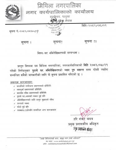 घर अभिलेखिकरण सम्बन्धि सूचना !!!