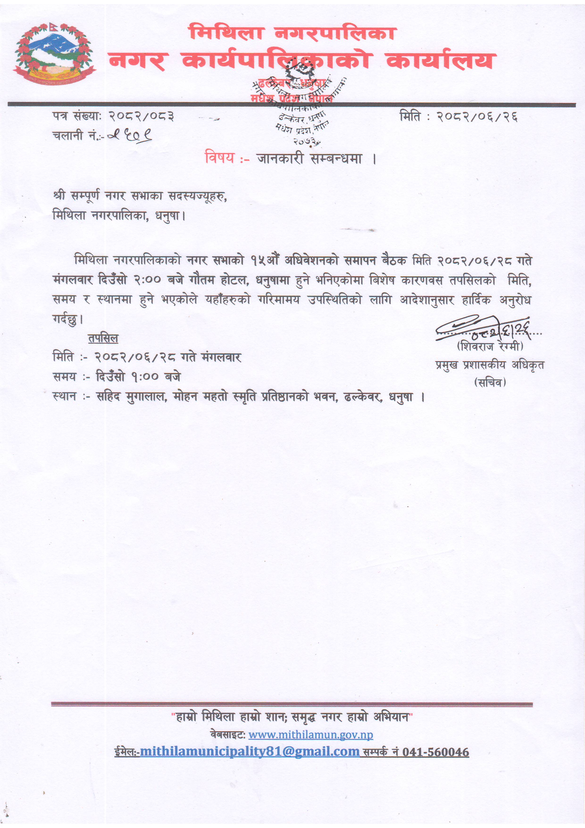 » जानकारी सम्बन्धमा - श्री (नगर सभाका सदस्यज्यूहरु सबै) मिथिला नगरपालिका !!!