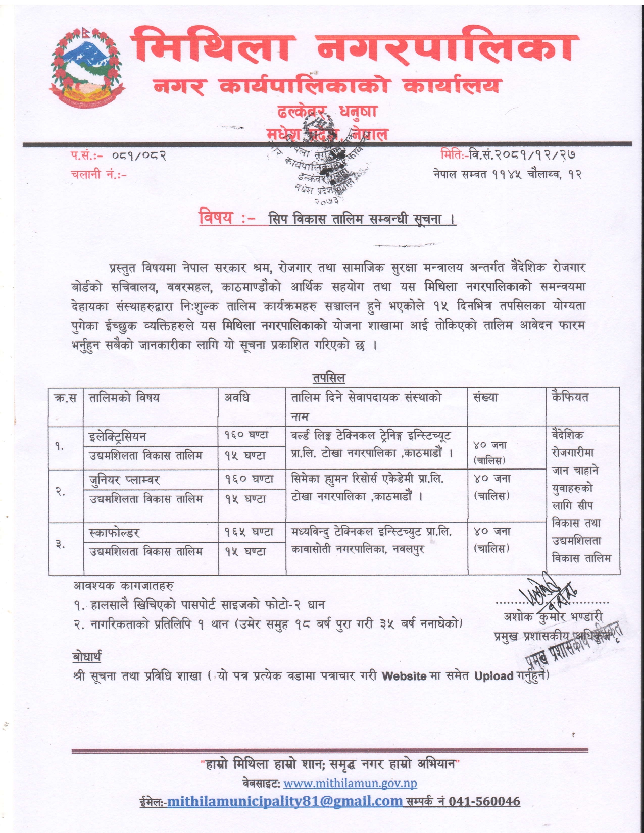 सिप विकास तालिम सम्बन्धि सूचना !!!